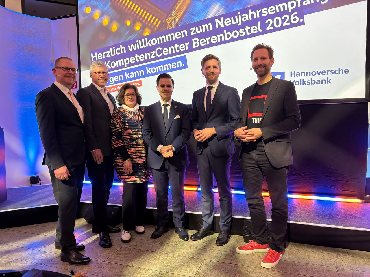 Garbsen, 15. Januar 2026: Die Hannoversche Volksbank lädt im Januar traditionell zu einem Neujahrsempfang in ihre Räume in Berenbostel ein. Rund 150 Gäste aus den Städten Neustadt, Wunstorf und Garbsen sind auch in diesem Jahr der Einladung gefolgt und sorgten für ein volles Haus. Daniel Haartz, stellvertretender Vorsitzender des Vorstands der Bank, freute sich sehr über den regen Zuspruch. Bei seiner kurzen Einführung konnte er zahlreiche Vertreterinnen und Vertreter aus Politik, Wirtschaft, Verbänden und Kammern sowie u.a. Aufsichtsratsmitglieder und Mitarbeitende der Hannoverschen Volksbank begrüßen.